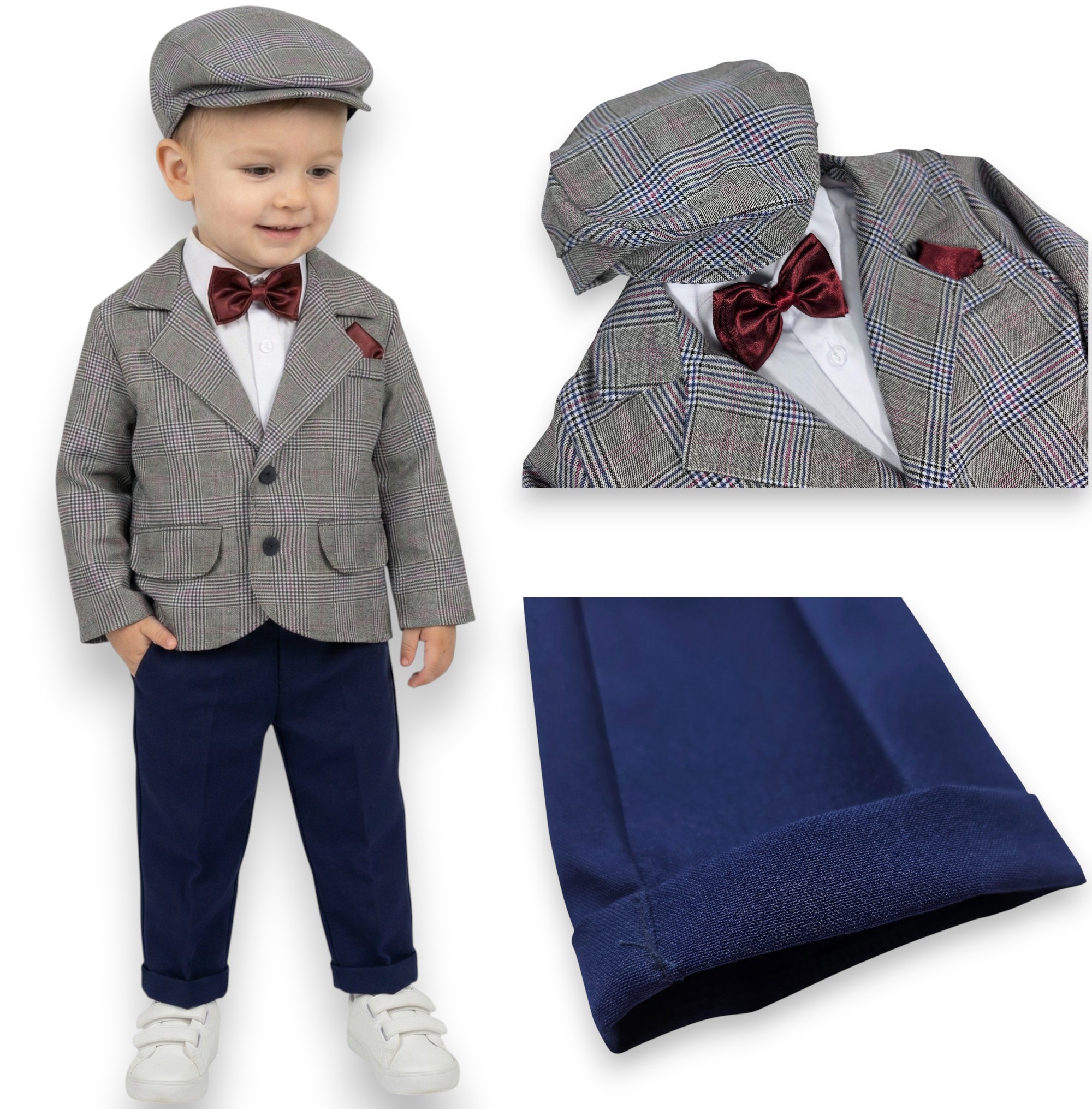 GARNITUR CHŁOPIĘCY 5w1 krata kaszkiet mucha WESELE Produkt Polski