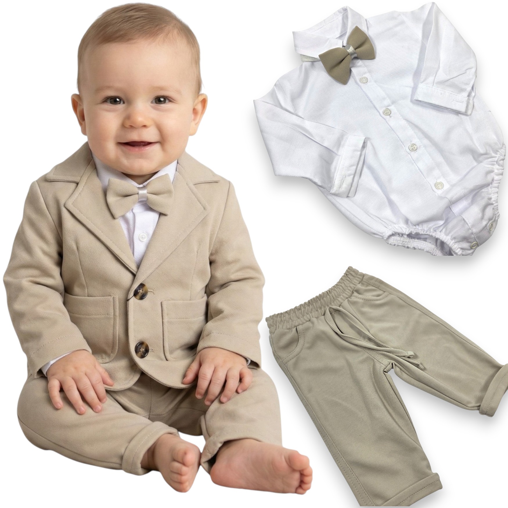 GARNITUR CHŁOPIĘCY 4w1 beżowy boho body ROCZEK CHRZEST