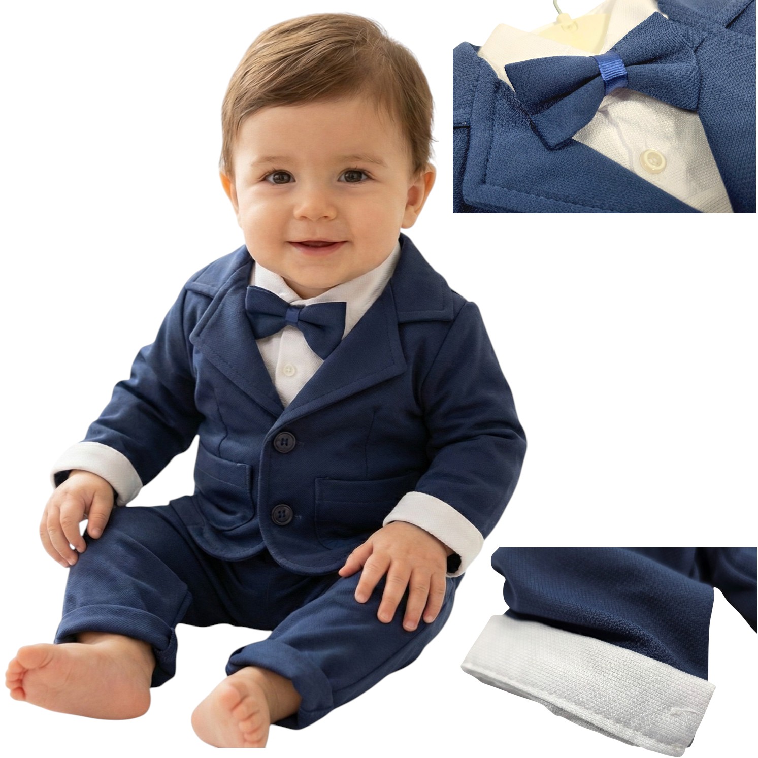 GARNITUR CHŁOPIĘCY 4w1 granatowy miękki mucha Roczek Chrzest