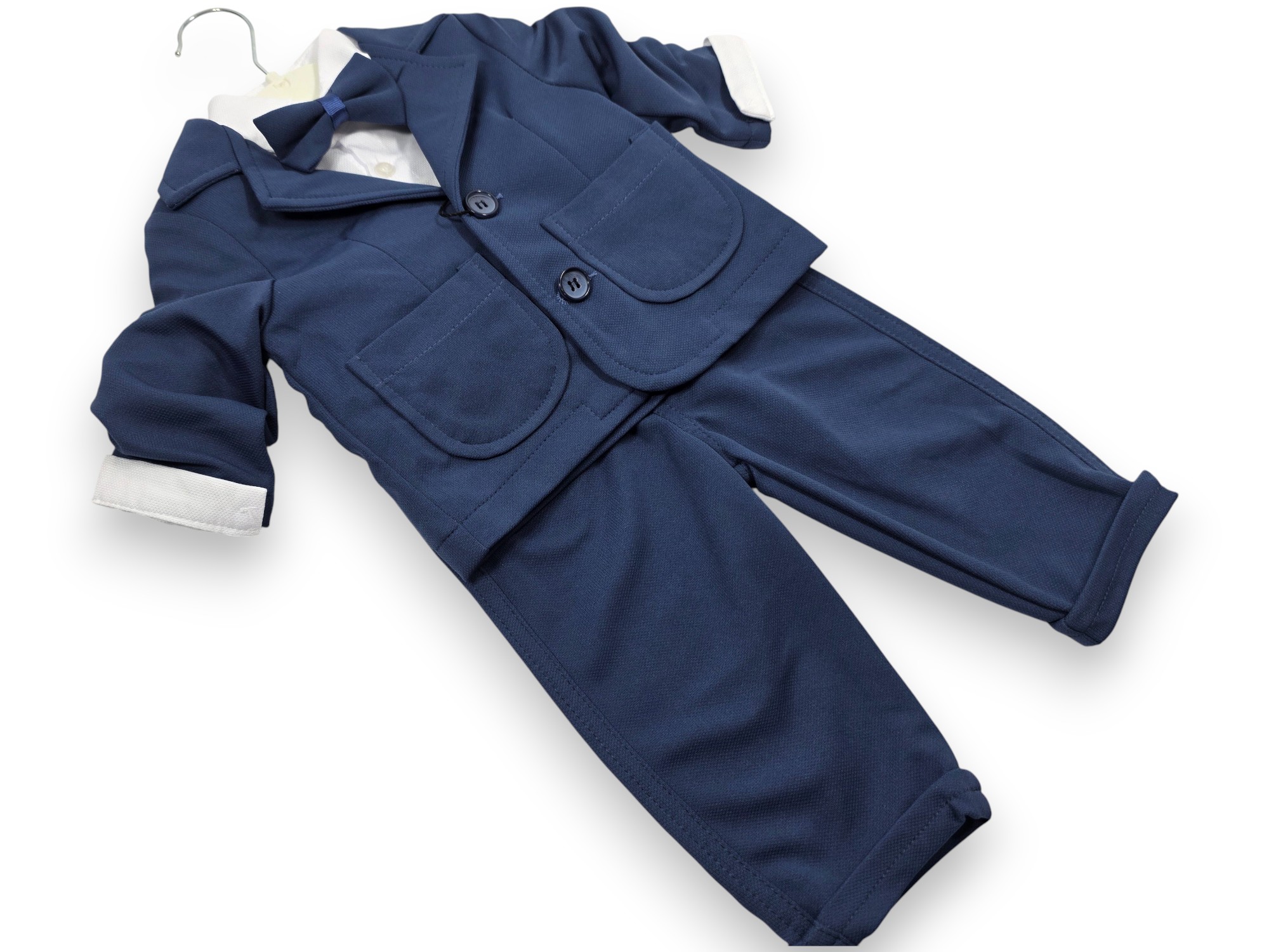 Ten granatowy garnitur niemowlęcy to kompromis idealny! Wygląda jak profesjonalny garnitur taty, ale w dotyku jest mięciutki i przyjemny. To miękki garnitur, w którym zero sztywności łączy się ze 100% elegancji! ✨