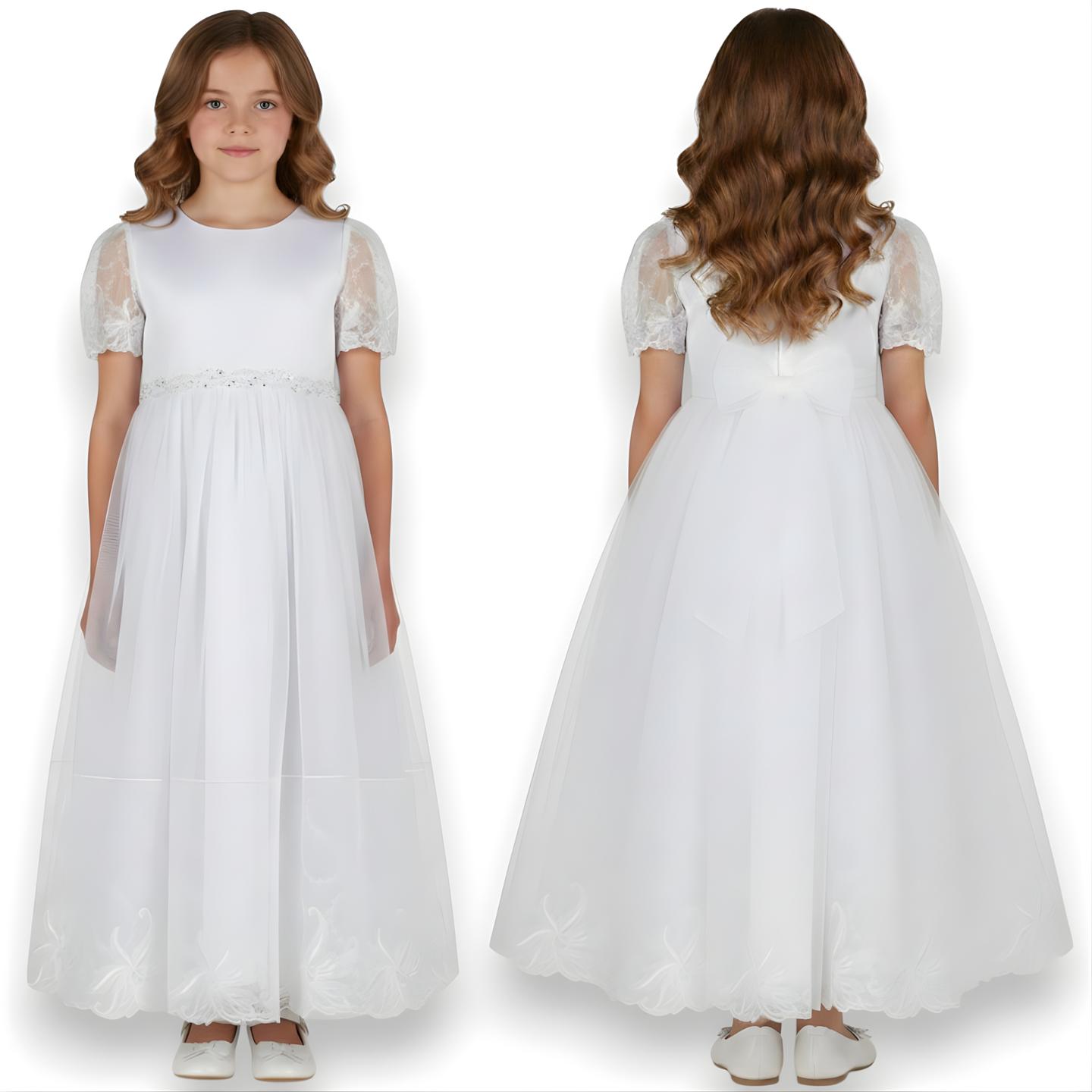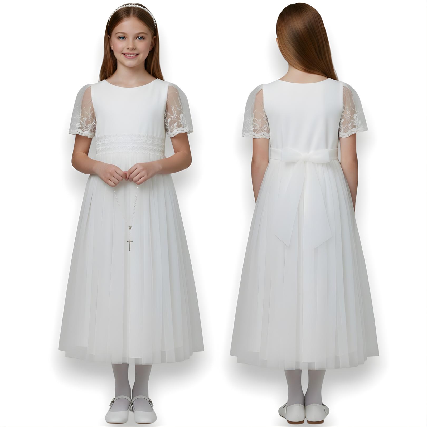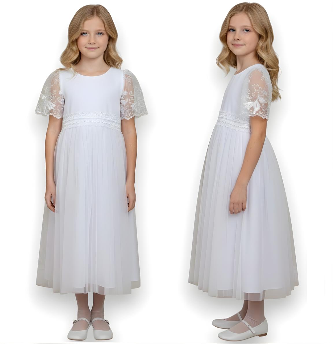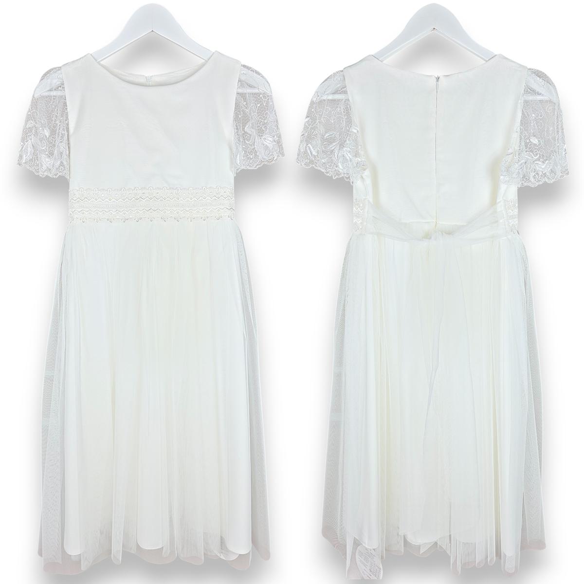 SUKIENKA KOMUNIJNA elegancka koronkowe rękawy haft - PRODUKT POLSKI