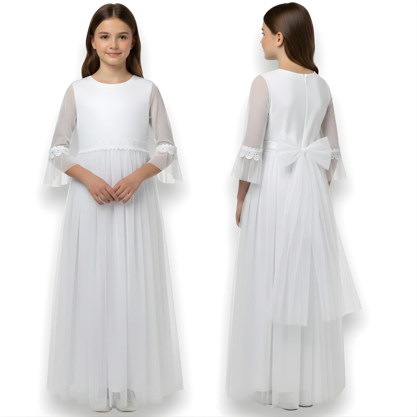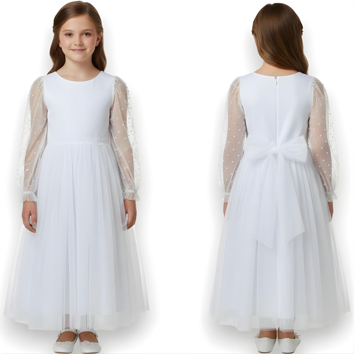 SUKIENKA KOMUNIJNA długi rękaw BIAŁA wizytowa POLSKI PRODUKT