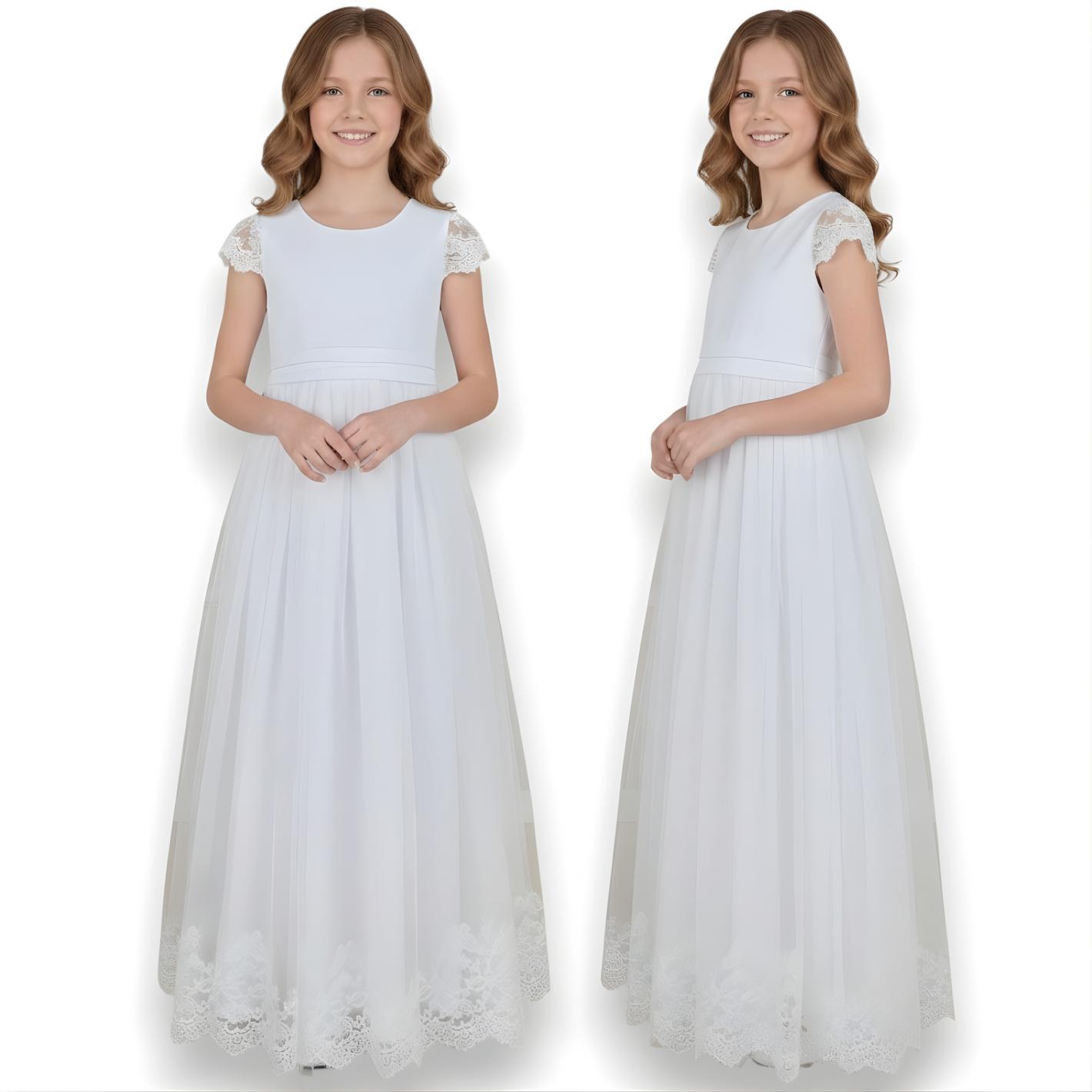 SUKIENKA KOMUNIJNA długa ELEGANCKA biała tiul koronka PRODUKT POLSKI