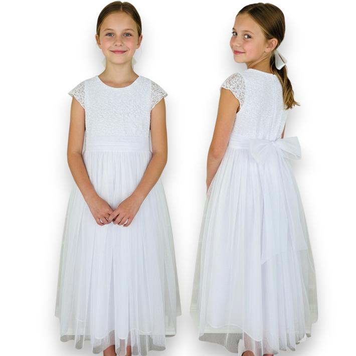 SUKIENKA KOMUNIJNA wizytowa biała tiul koronka PRODUKT POLSKI