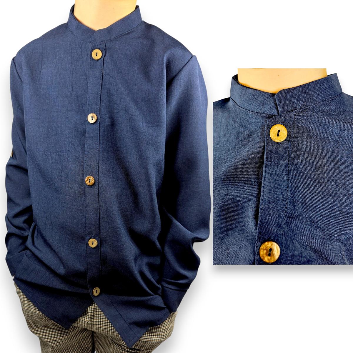 KOSZULA CHŁOPIĘCA granatowa stójka 100% BAWEŁNA Produkt Polski
