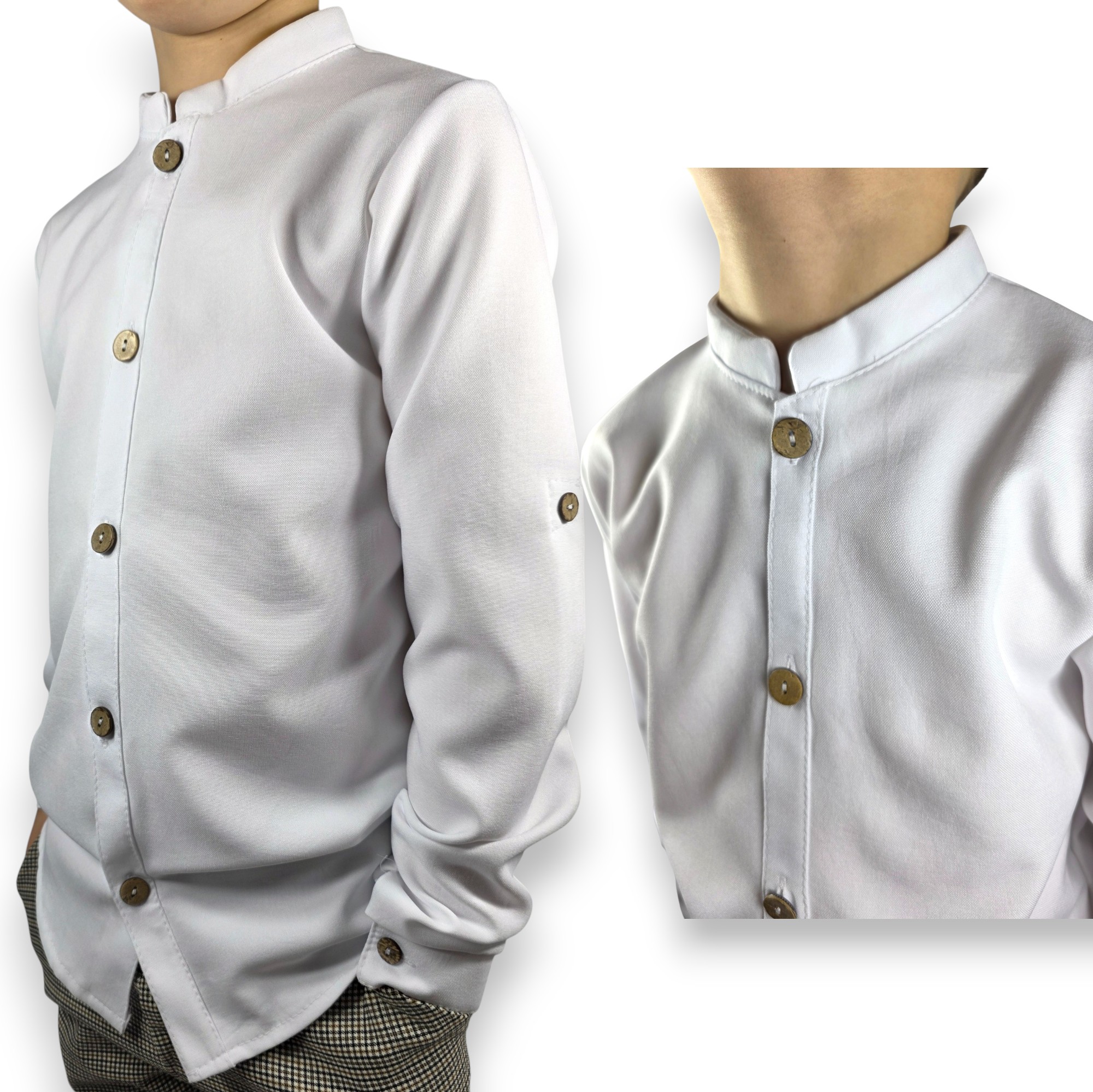 KOSZULA CHŁOPIĘCA stójka biała 100% BAWEŁNA Produkt Polski