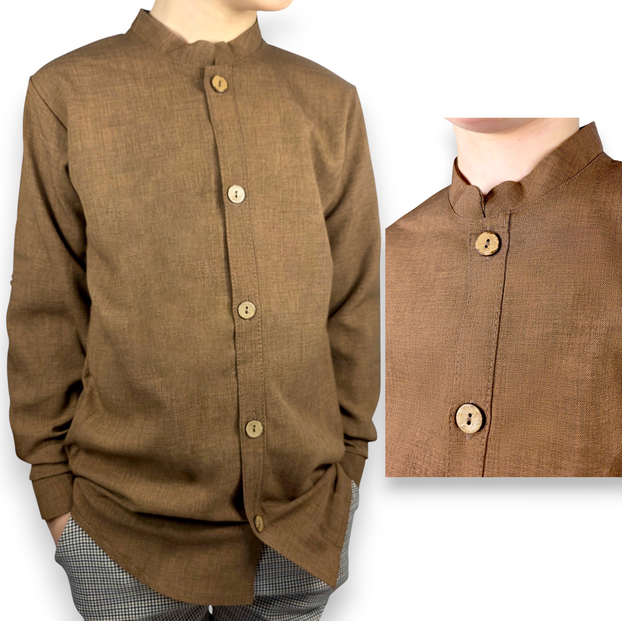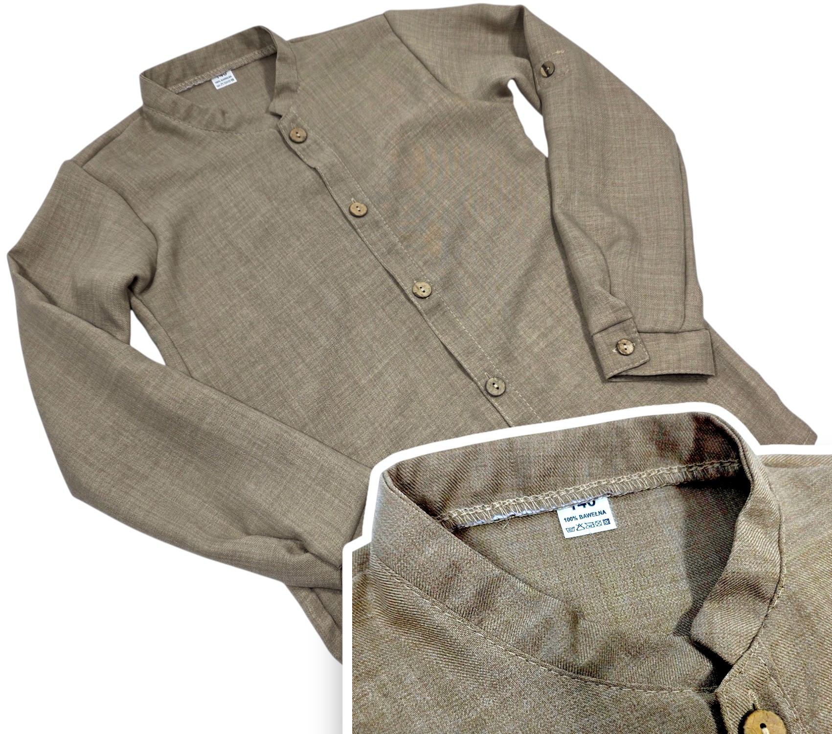 KOSZULA CHŁOPIĘCA stójka brązowa 100% BAWEŁNA Produkt Polski