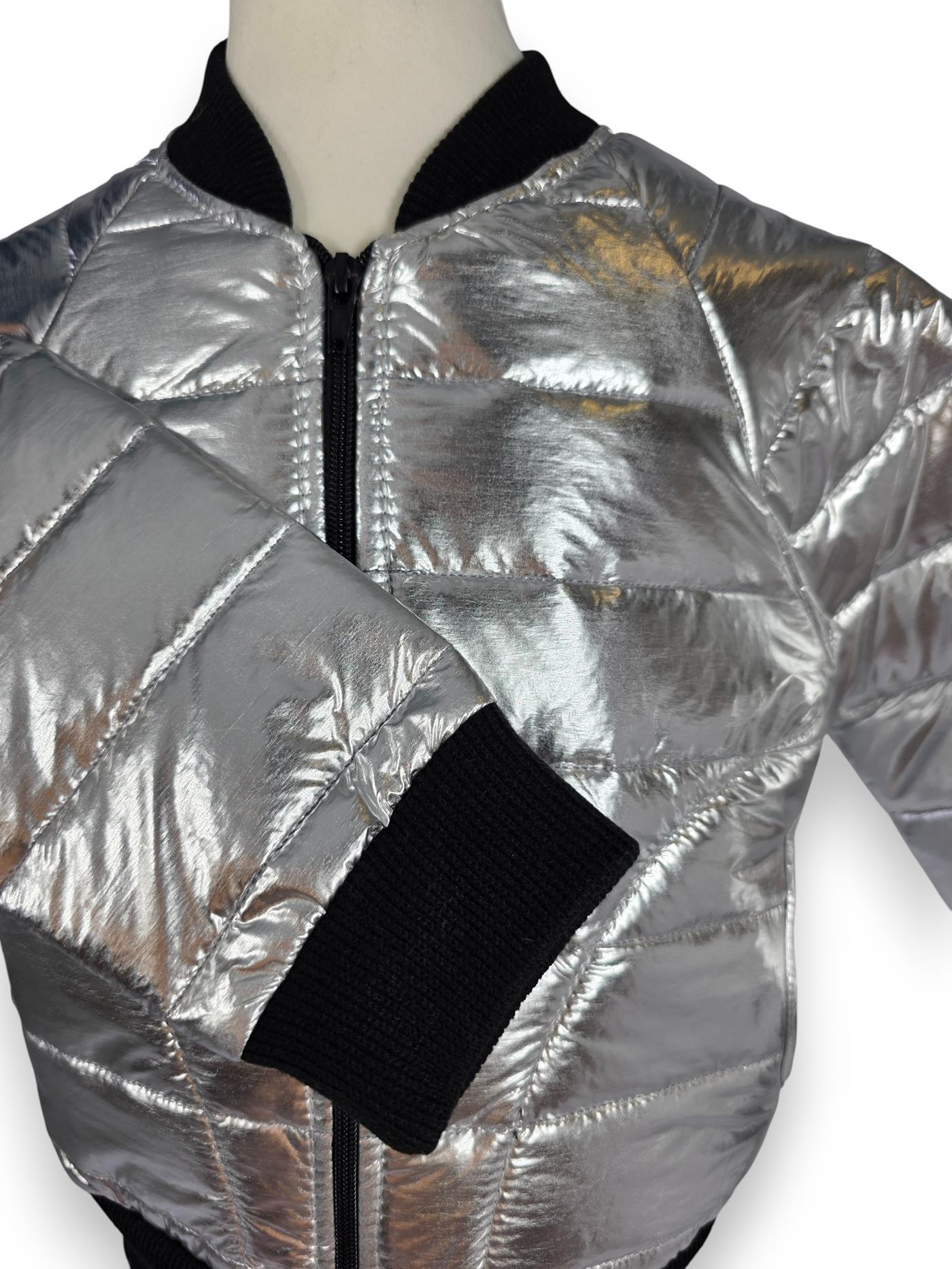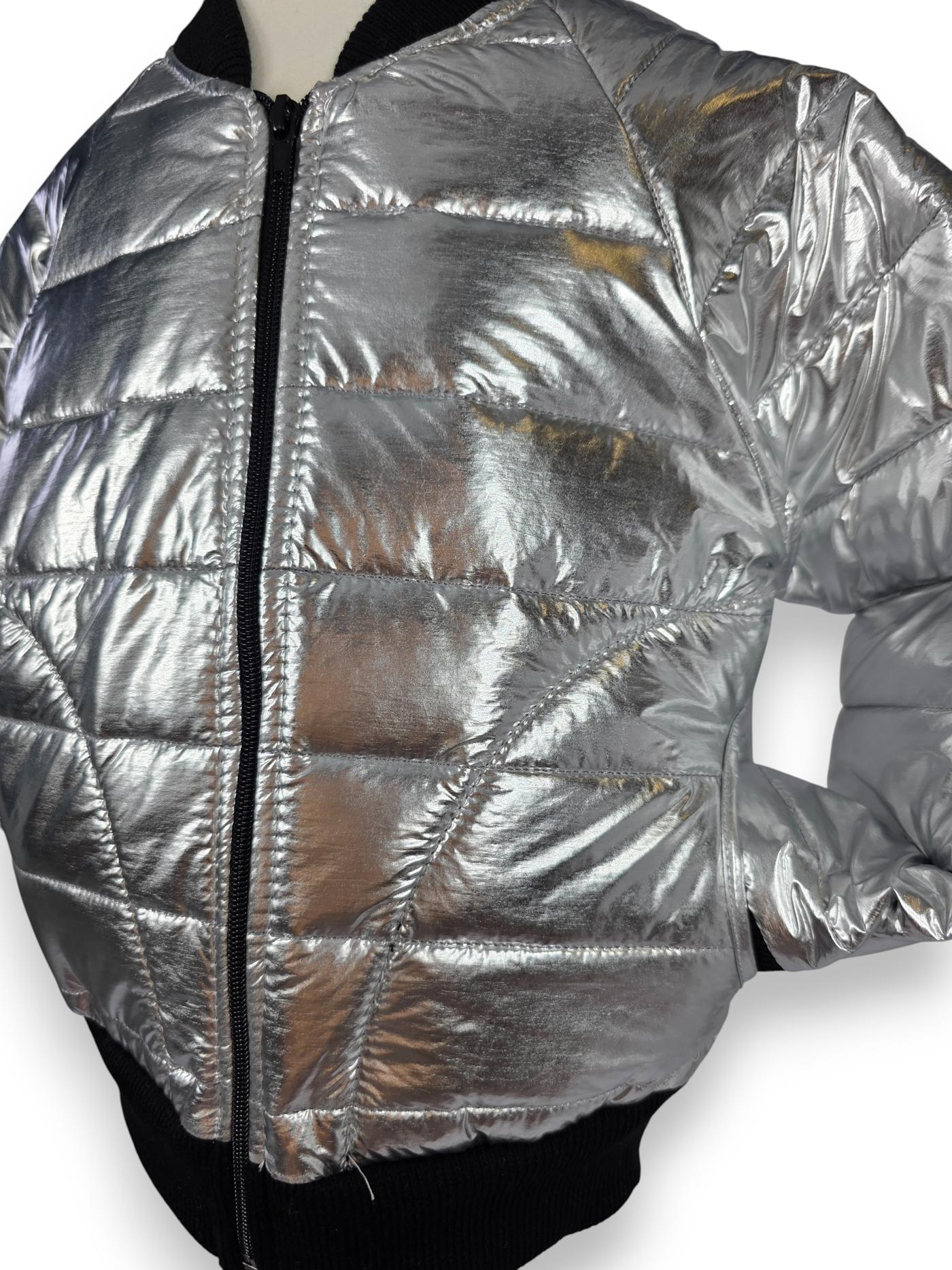 Ta srebrna, metaliczna bomberka to propozycja dla odważnych i stylowych dzieci! Wygląda jak element stroju astronauty lub gwiazdy pop, a przy tym jest niesamowicie wygodna i praktyczna. Idealna do szkoły, na rower czy szalony spacer.