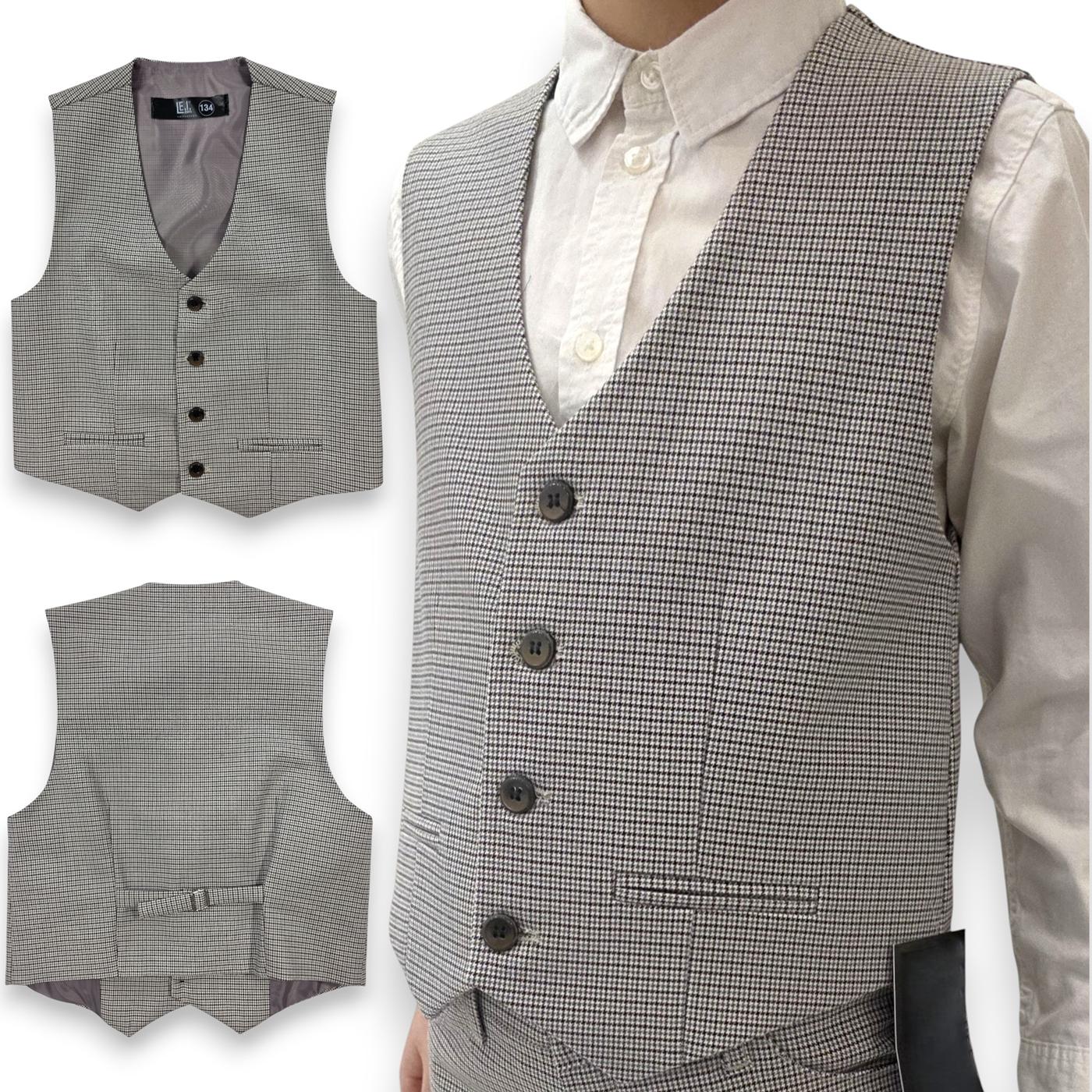 KAMIZELKA CHŁOPIĘCA pepitka krata ELEGANCKA do garnituru