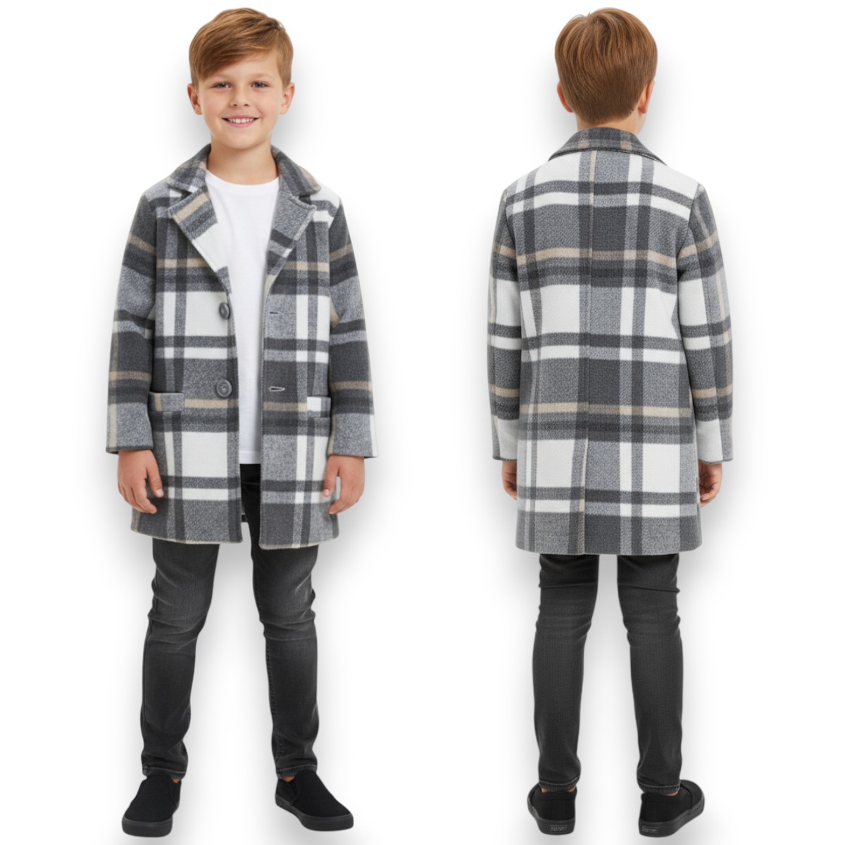 PŁASZCZ CHŁOPIĘCY przejściowy krata szary beż PRODUKT POLSKI