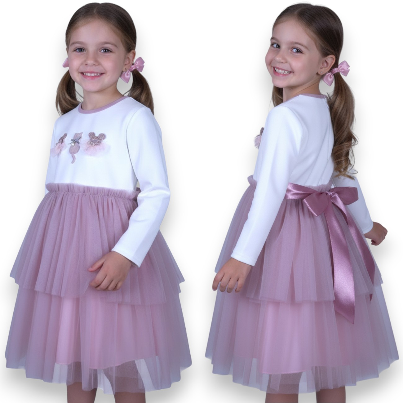SUKIENKA WIZYTOWA tiul myszki baletnice długi rękaw PRODUKT POLSKI