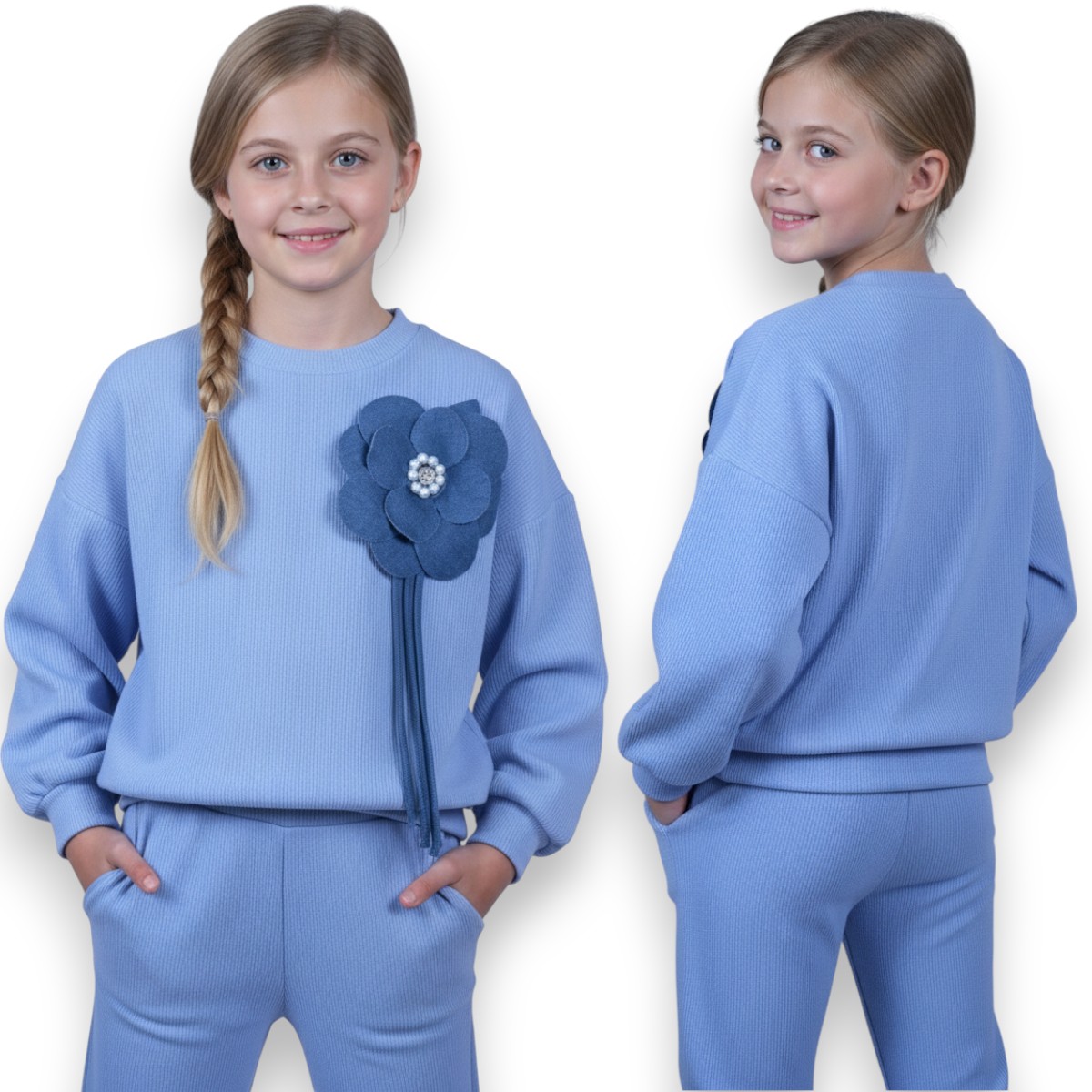 DRES DZIEWCZĘCY niebieski prążek KWIAT 3D Produkt Polski
