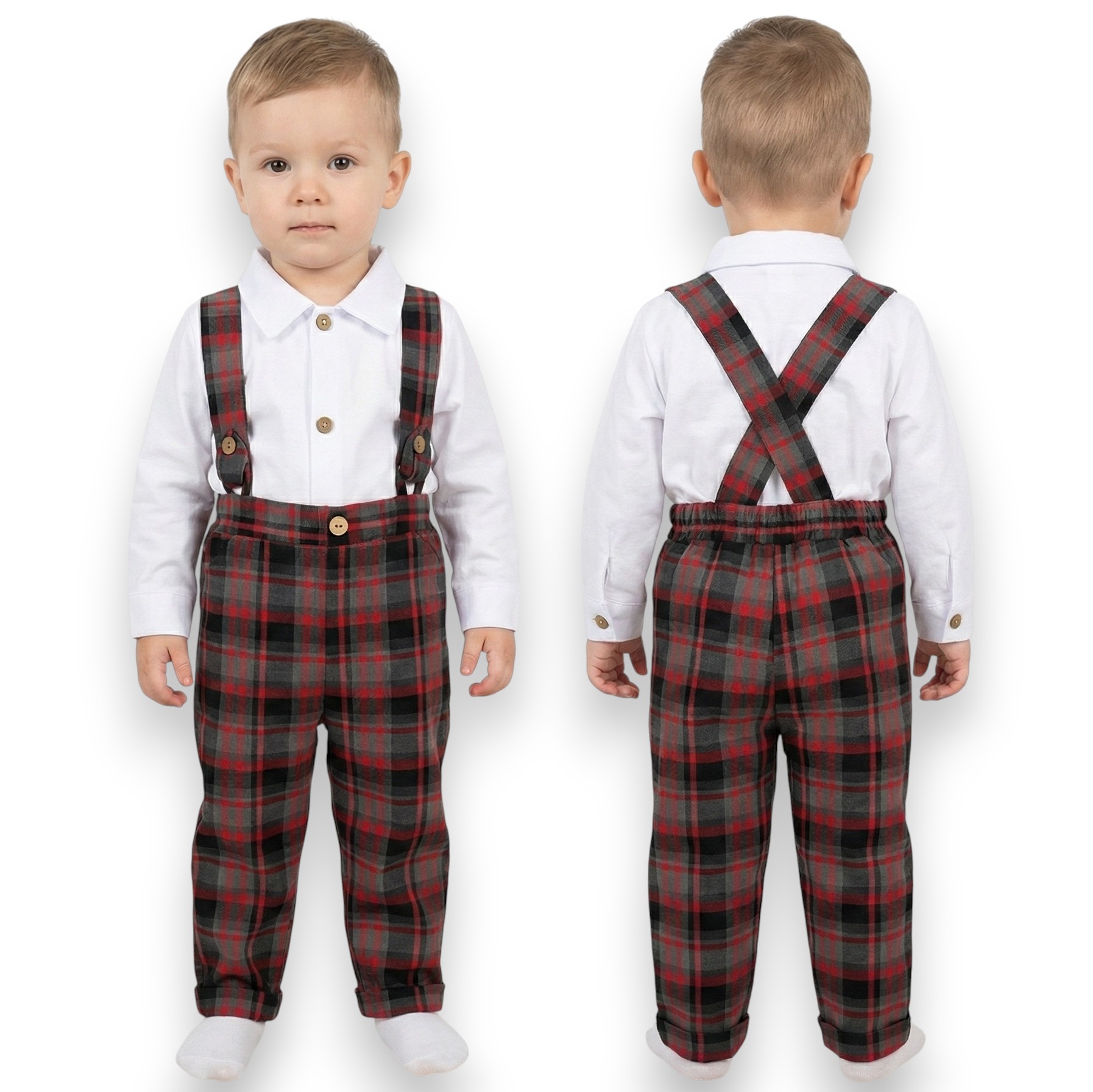 Spodnie chłopięce w czerwoną kratę modne casual eleganckie świąteczne