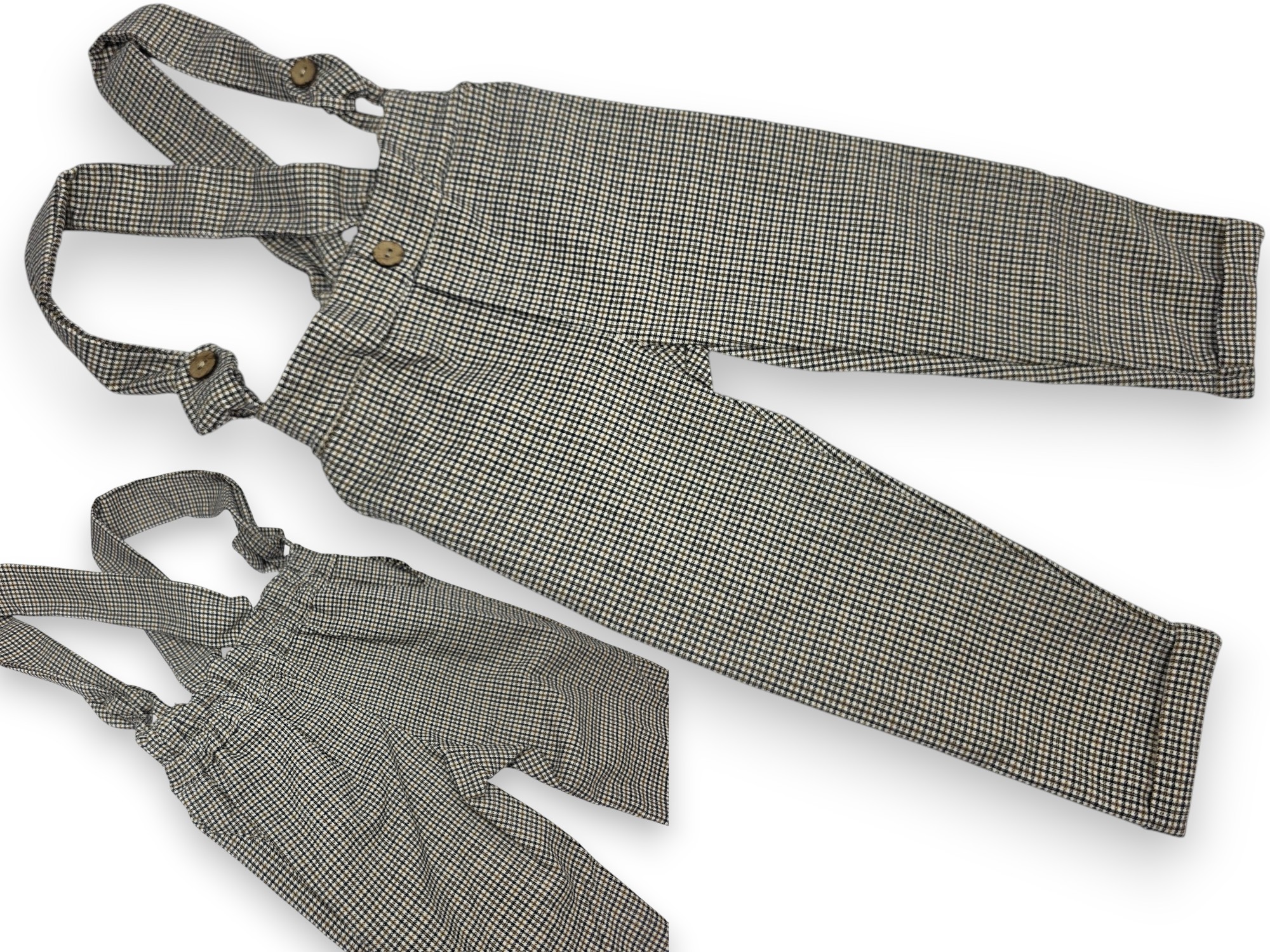 SPODENKI NA SZELKACH pepitka krata ELEGANCKIE ogrodniczki