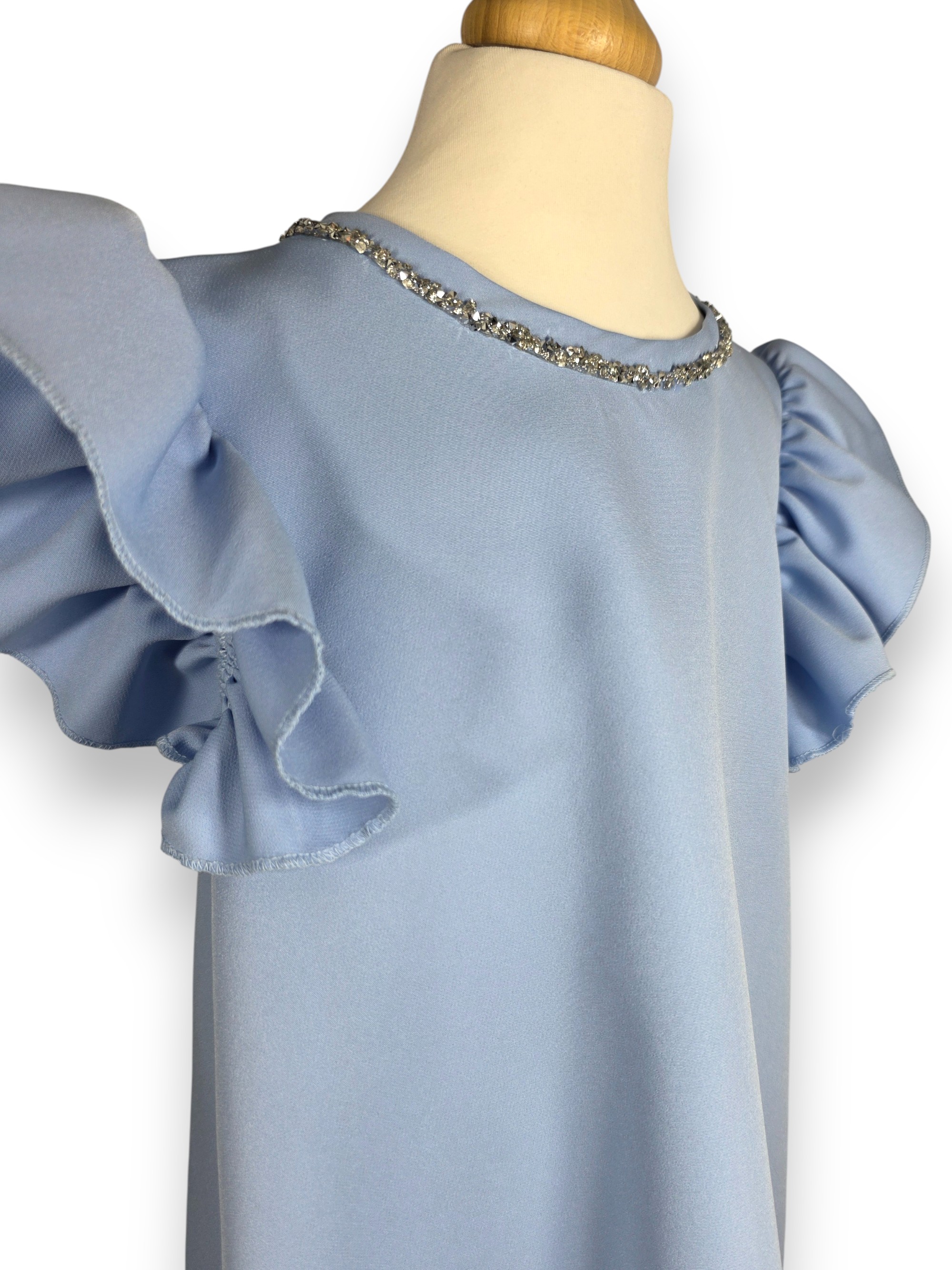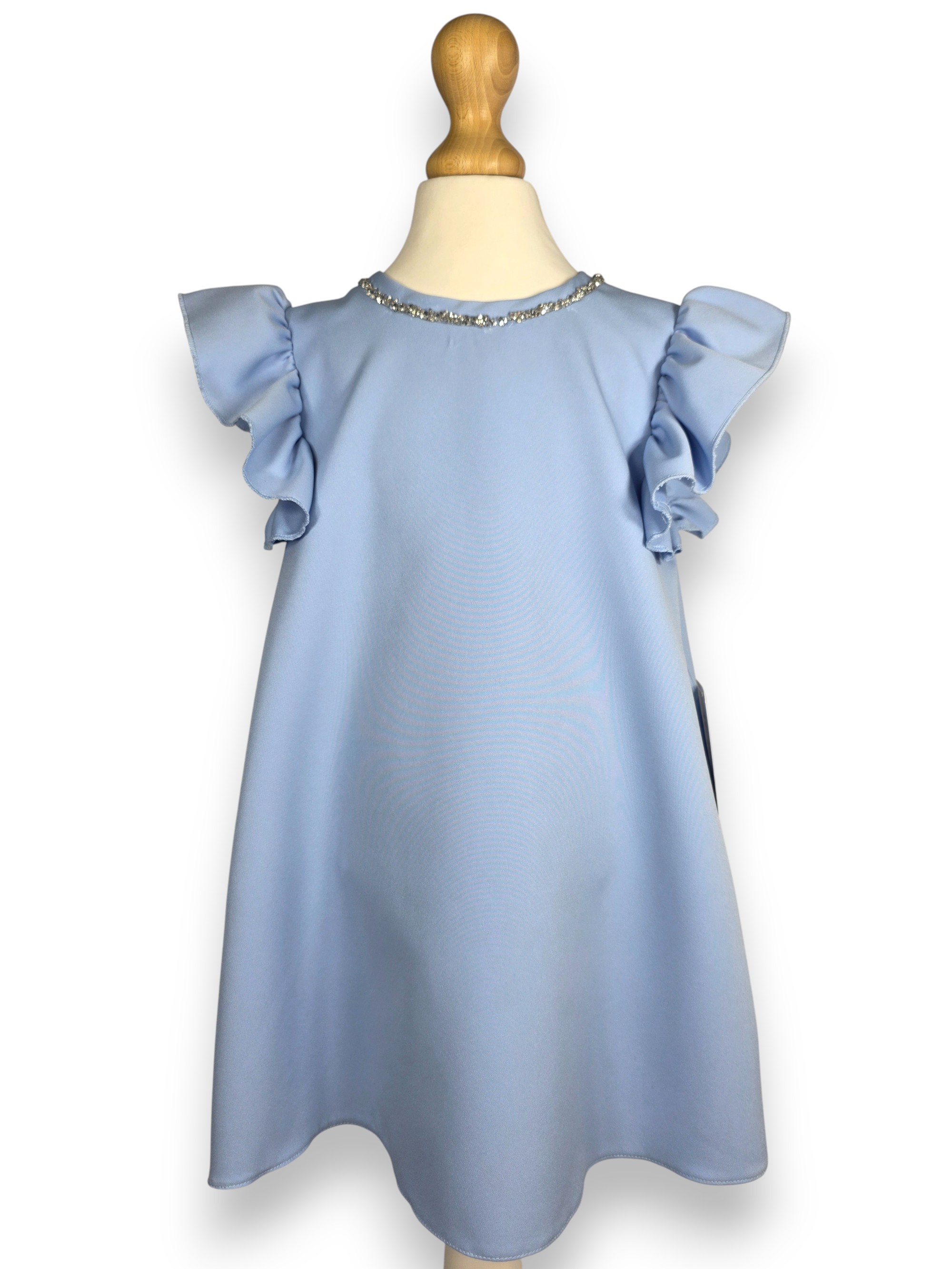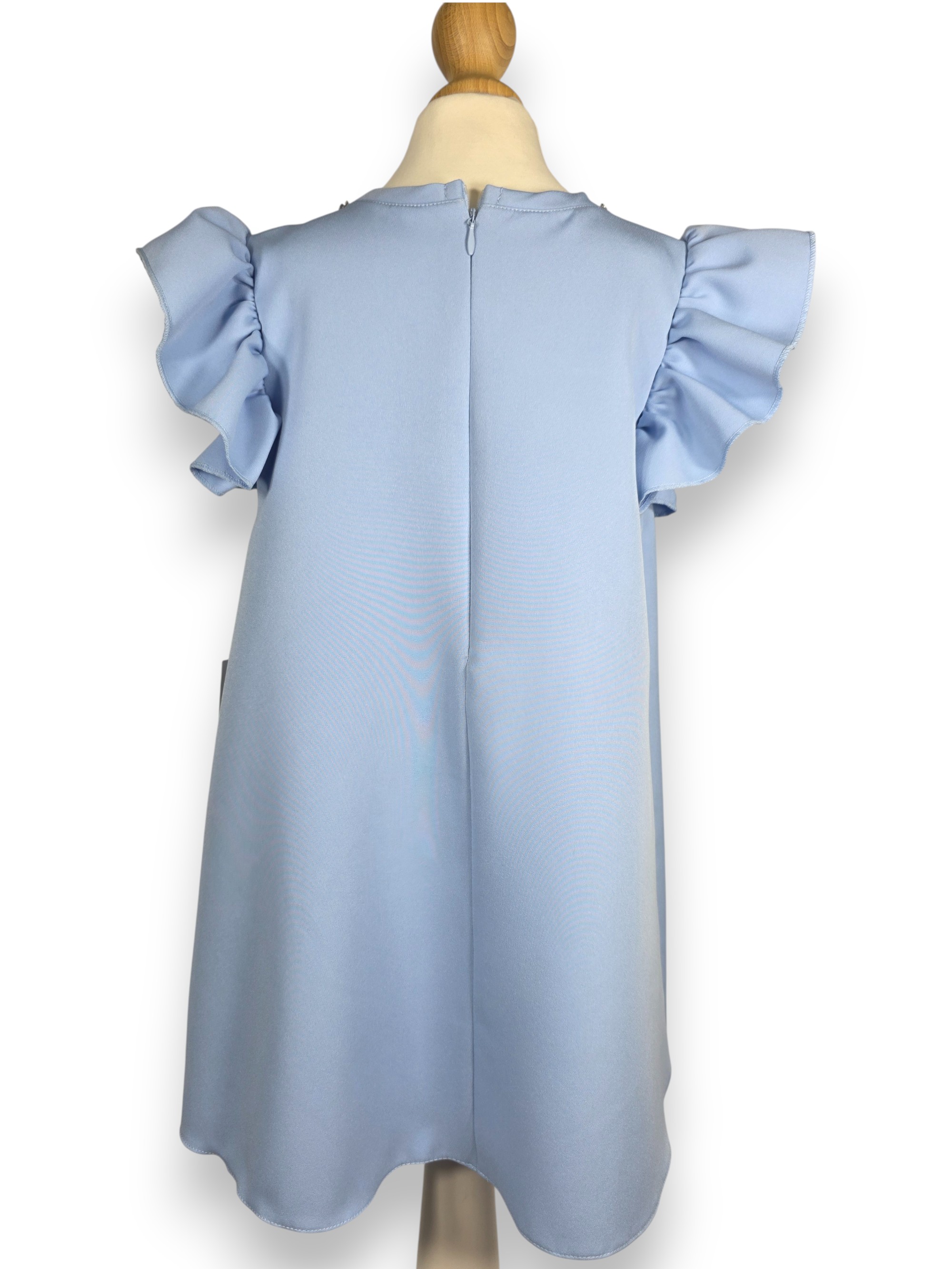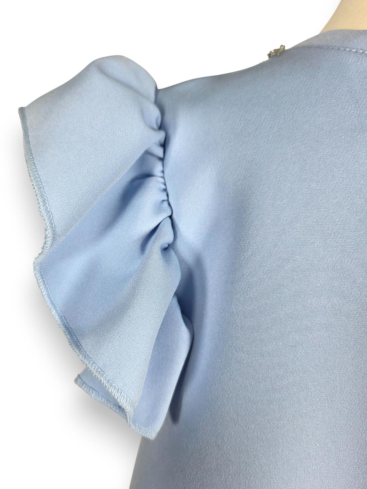 Szukasz kreacji, która zachwyca prostotą, a jednocześnie ma w sobie "to coś"? Ta przepiękna sukienka wizytowa w odcieniu pastelowego błękitu to kwintesencja dobrego stylu.