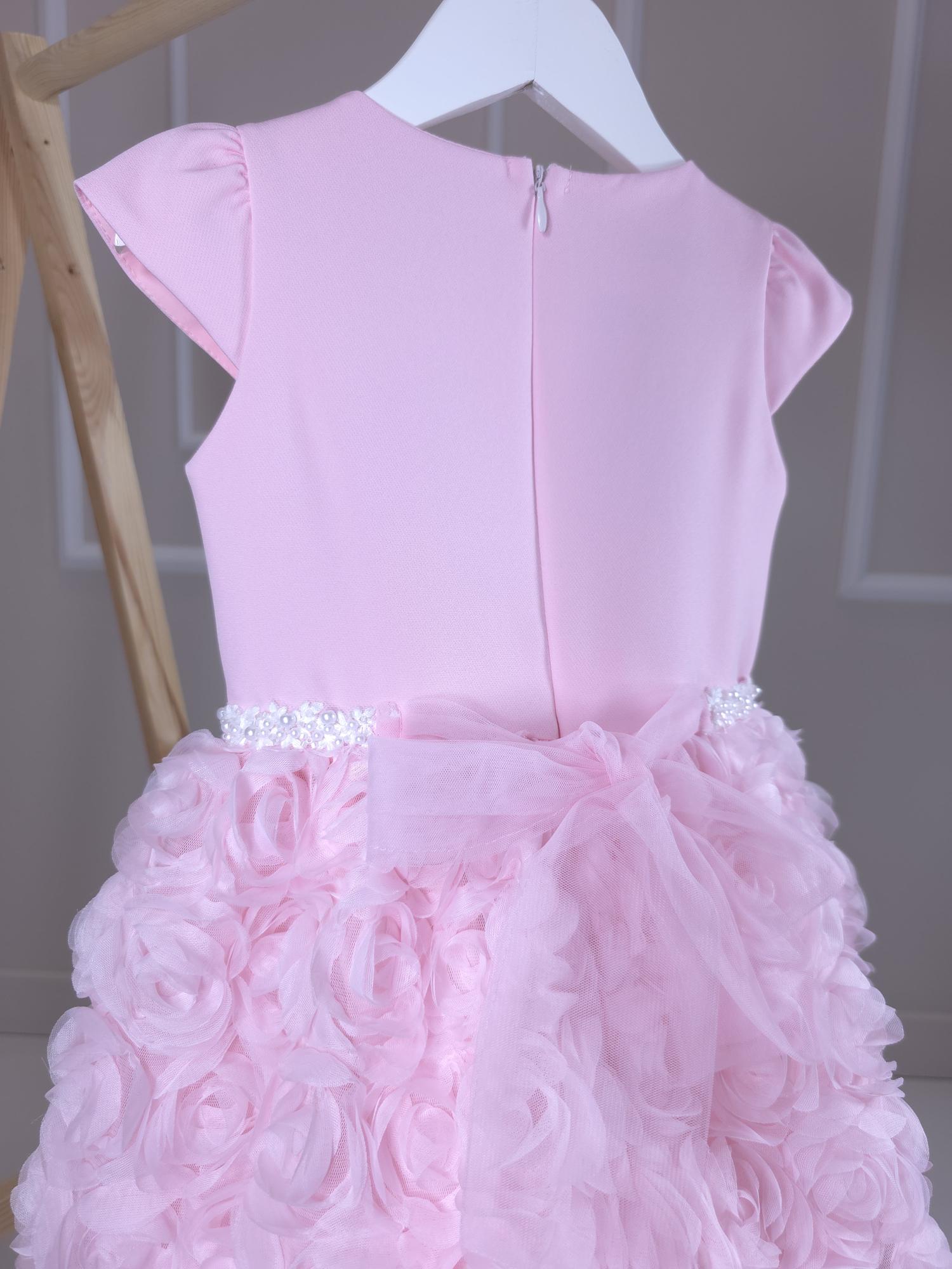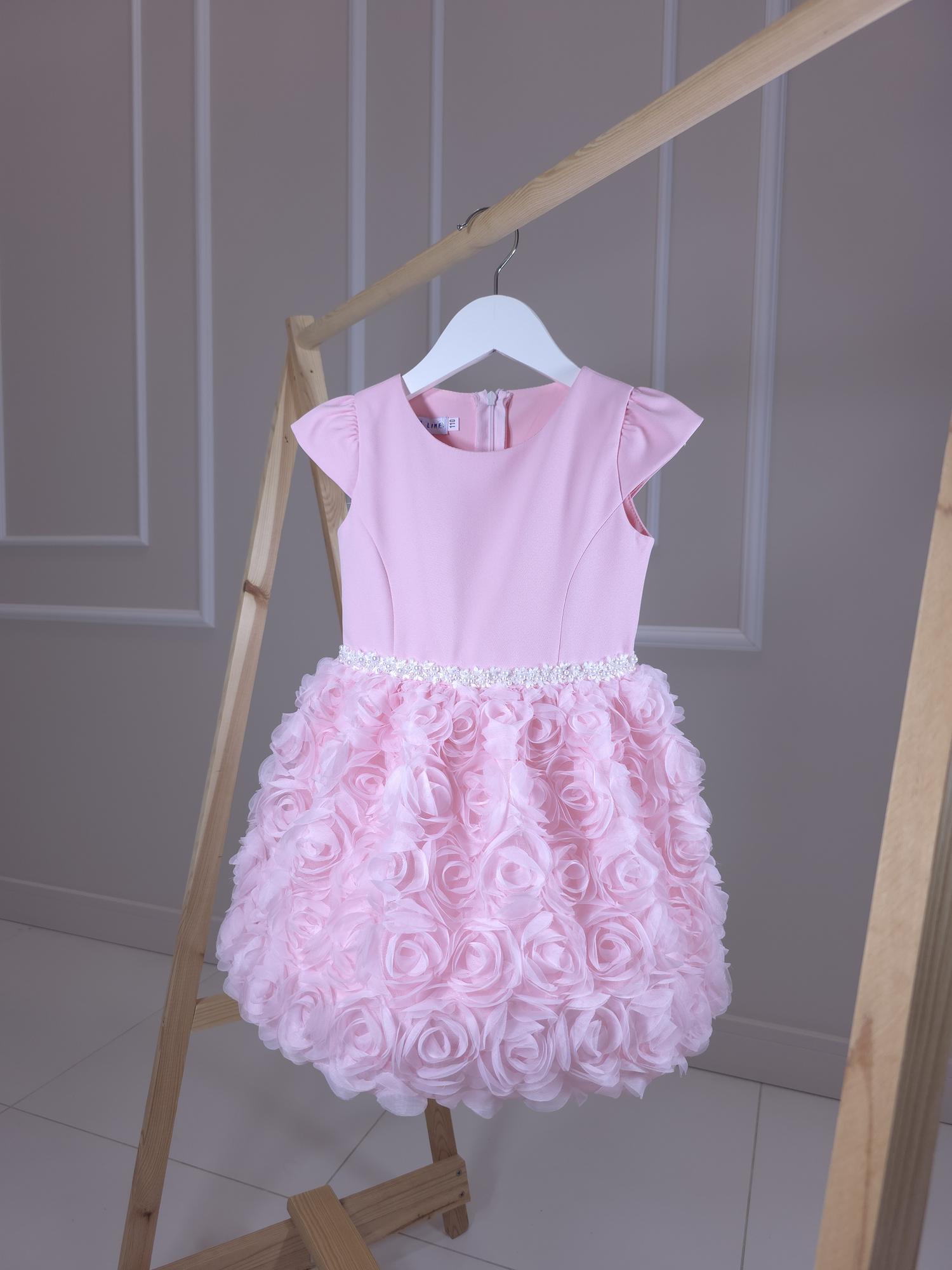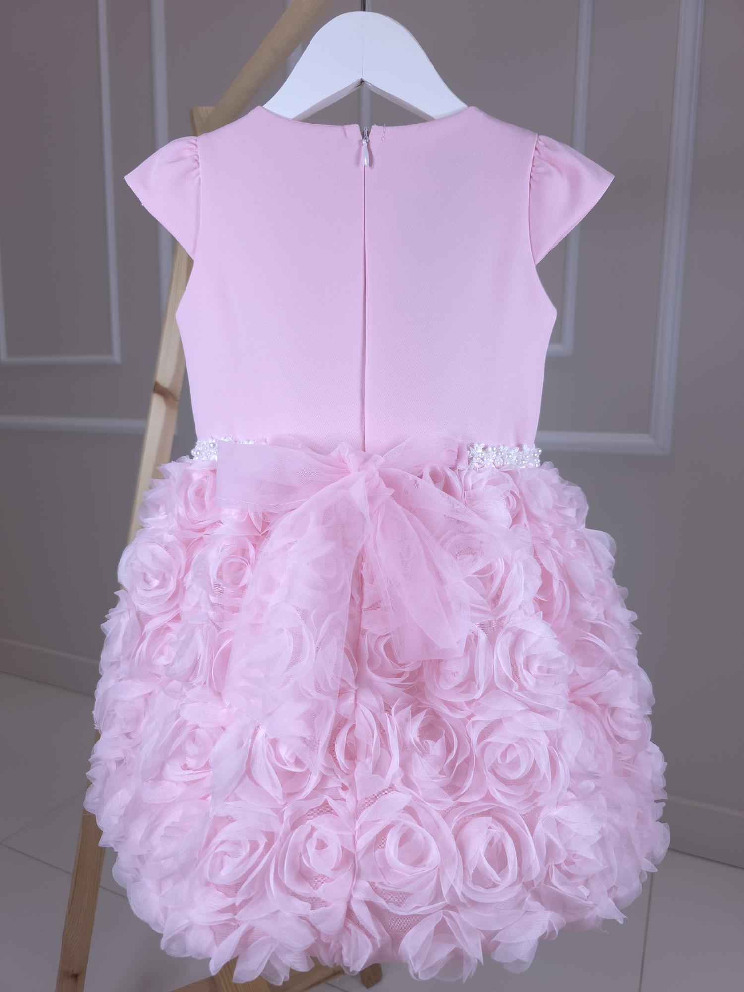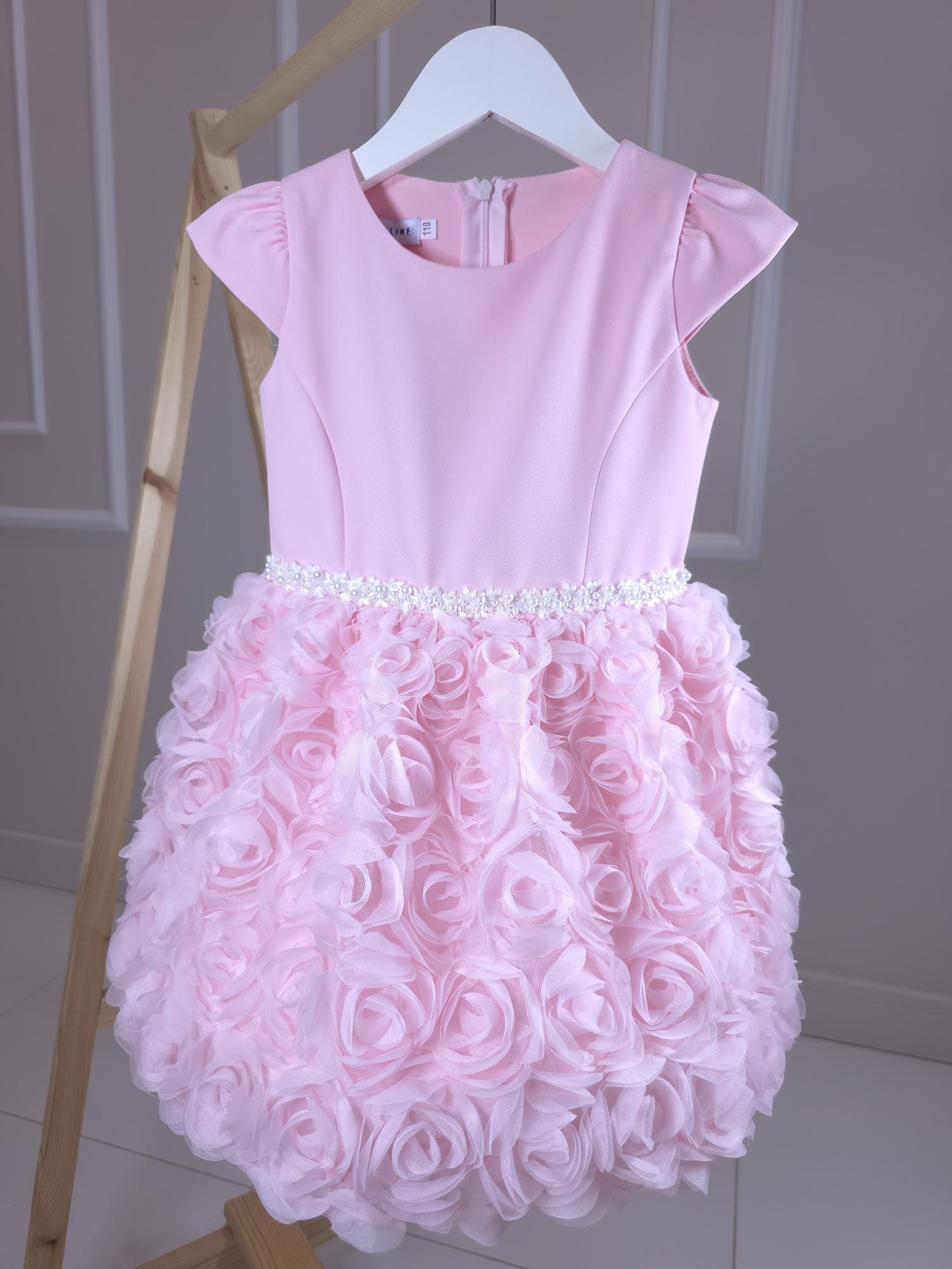 Prezentujemy przepiękną, elegancką sukienkę w kolorze pudrowego różu. To model, który kradnie serca unikalną fakturą materiału. Idealna na wesele (dla małej druhny), chrzciny, urodziny czy profesjonalną sesję zdjęciową.