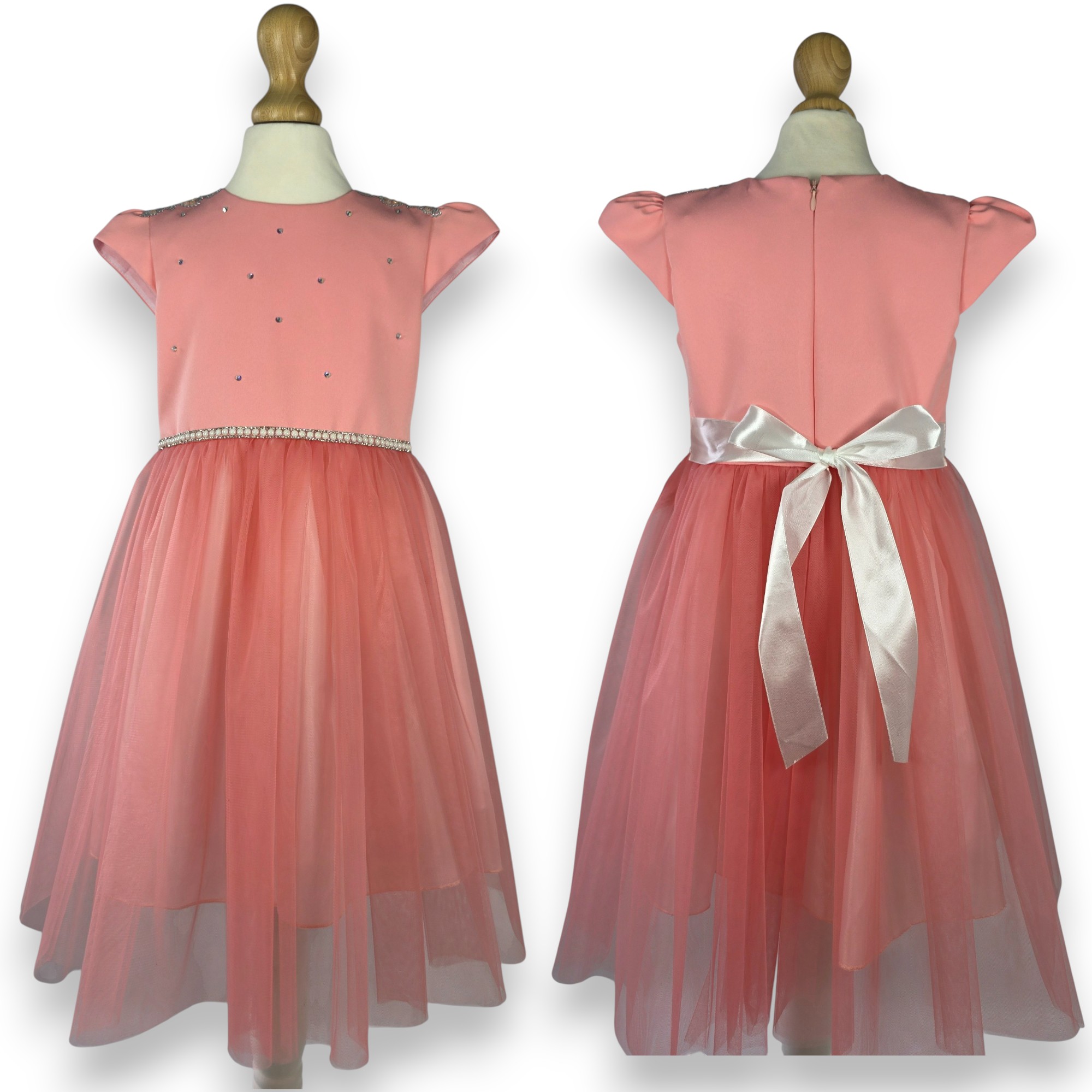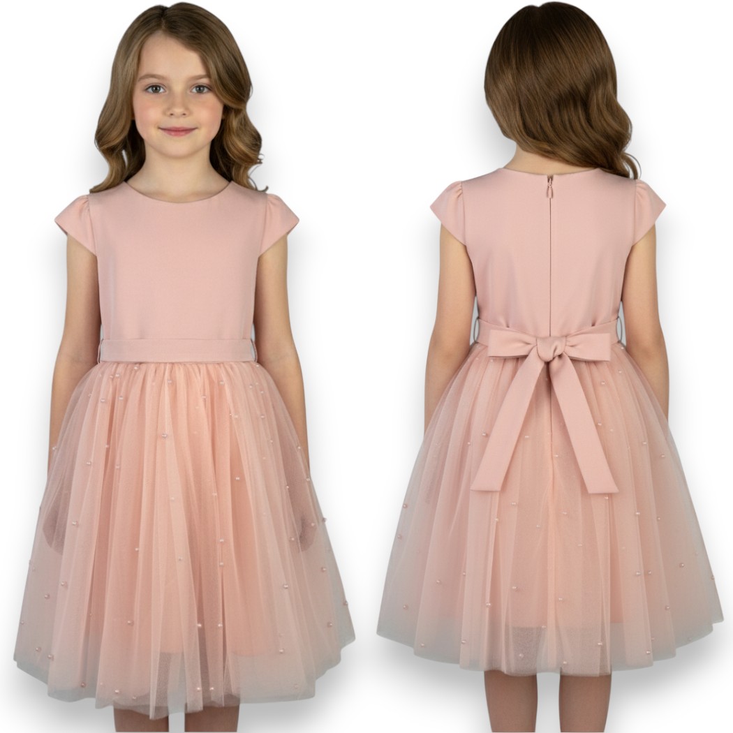 SUKIENKA WIZYTOWA brzoskwinia tiul perły koralowa PRODUKT POLSKI