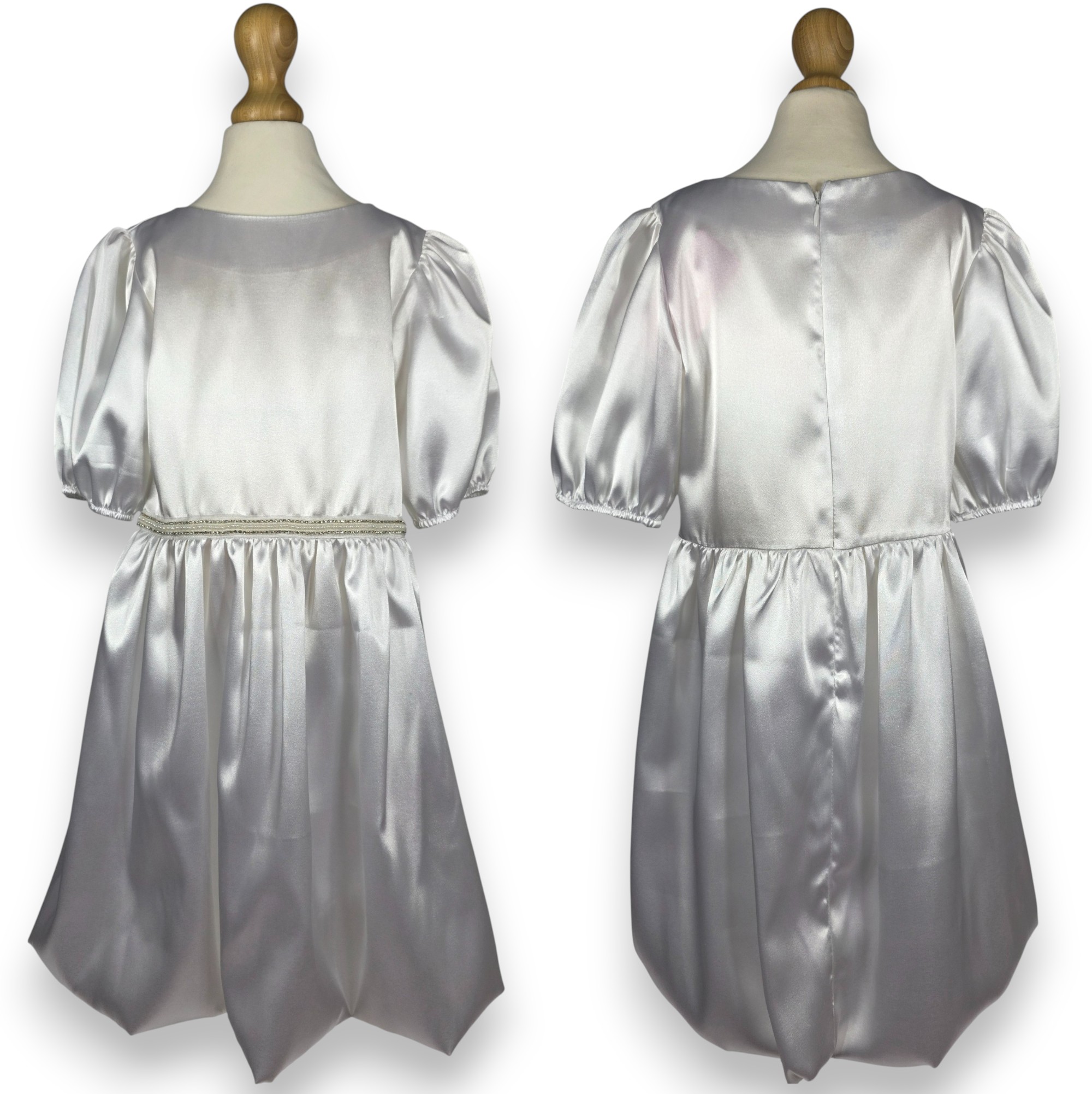 SUKIENKA WIZYTOWA biała satynowa BUFKI perełki PRODUKT POLSKI