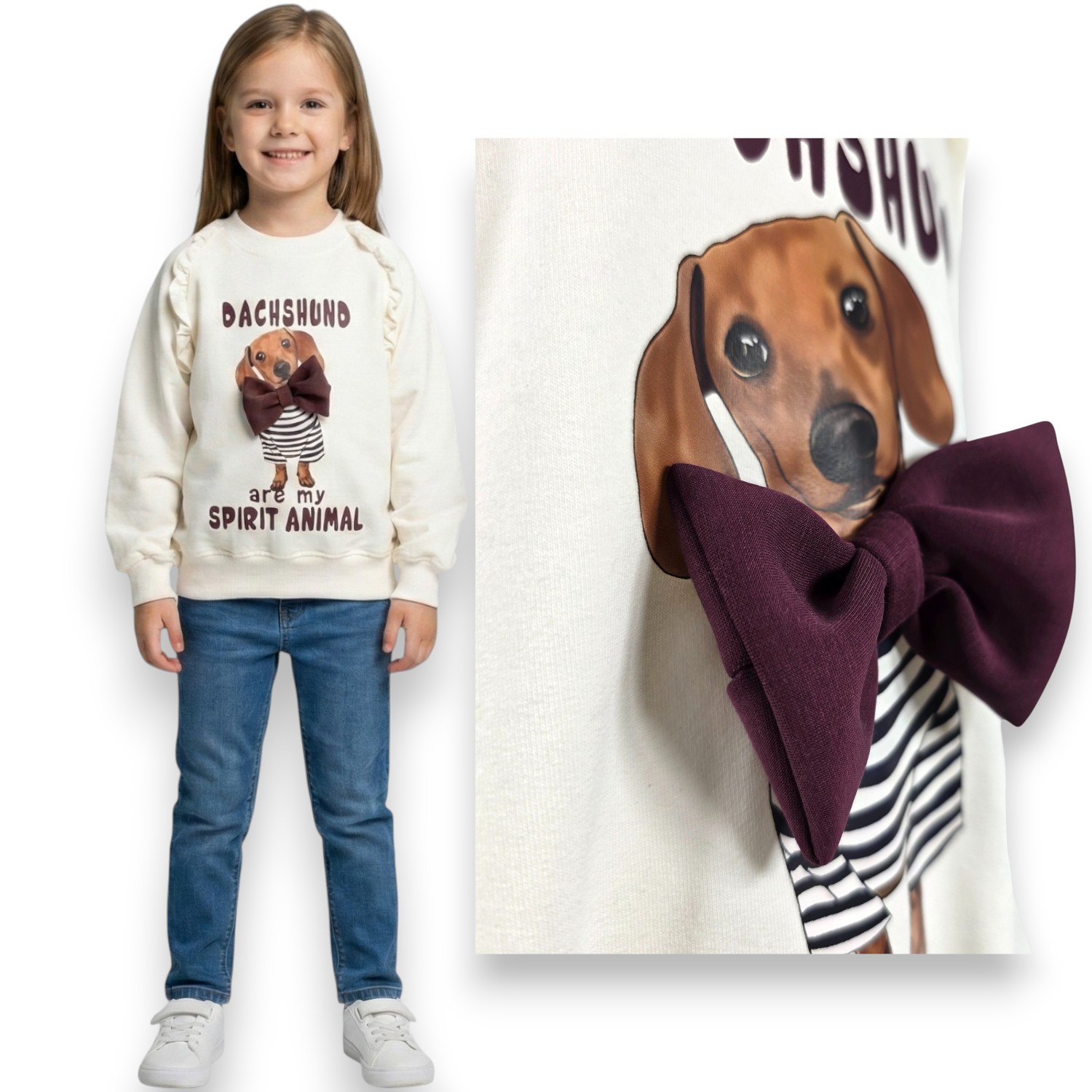 BLUZA DZIEWCZĘCA jamnik kokarda 3D falbanki PRODUKT POLSKI